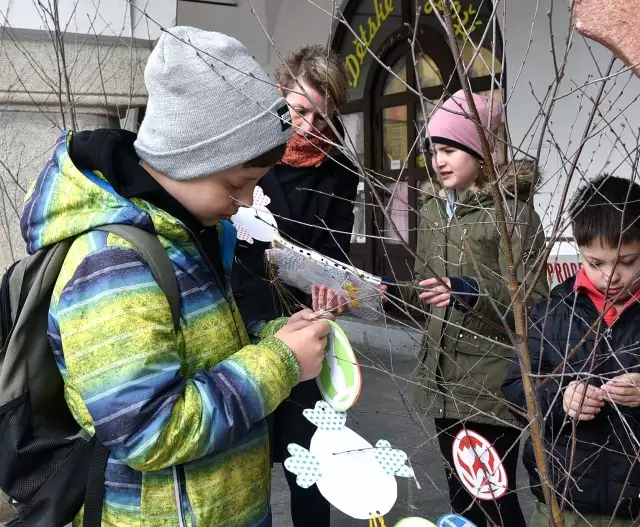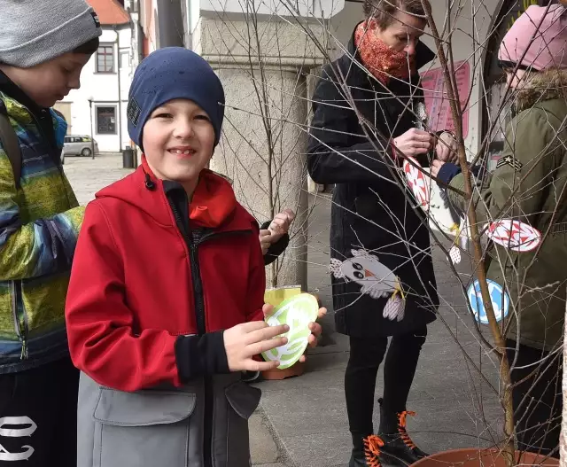 Vajíčkovníky před radnicí zdobí děti z pelhřimovských škol a školek, stromeček tu má už tradičně i ZŠ a MŠ Olešná. Školáci z jejího prvního stupně byli tentokrát nejrychlejší. Zdobili už brzy po osmé hodině ranní.