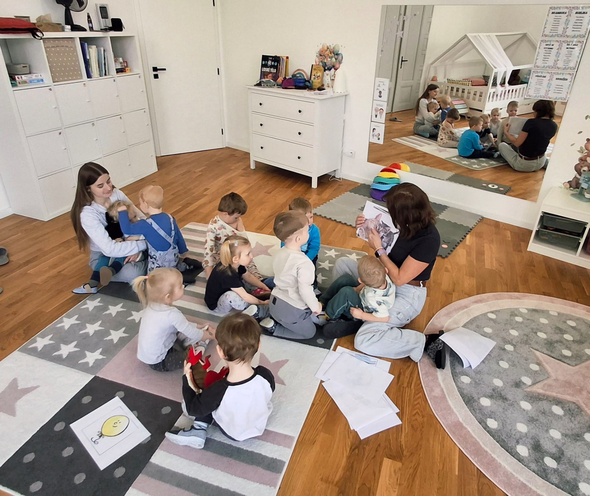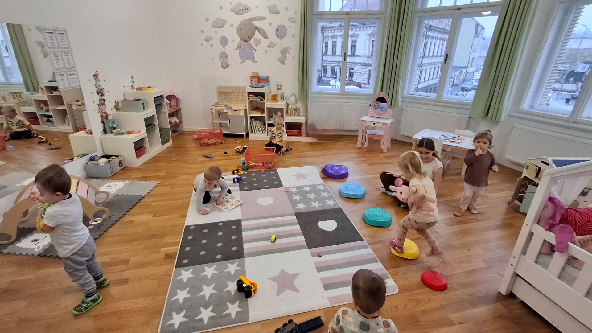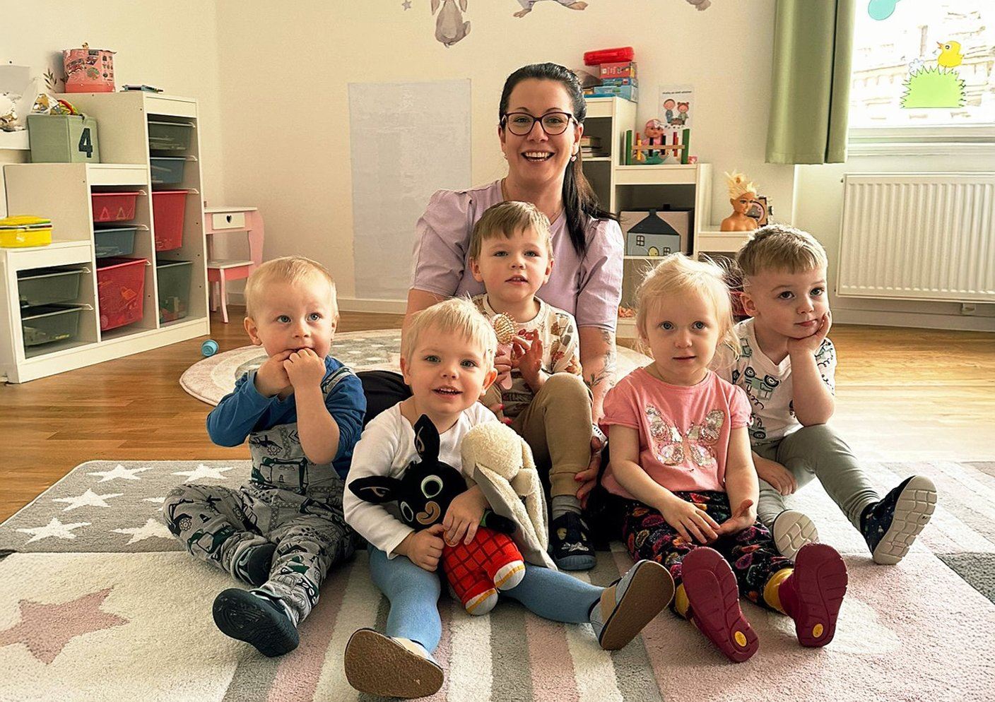 Dětská skupina má poměrně jasně nastavená pravidla. Na jednu pečující osobu může připadat maximálně šest dětí, což je dáno zákonem. Pokud má skupina kapacitu 12 dětí, musí zde být minimálně dvě pečující osoby, tedy chůvy. Podle potřeby se přidává i třetí osoba, například při pobytu venku. Ve městě je pohyb s malými dětmi náročnější a bezpečnost je na prvním místě, proto je vhodné mít při procházkách posilu. Děti v tomto věku ještě nedokážou plně udržet pozornost a koordinaci, takže větší dohled je nezbytný. Kromě toho máme i zástup za případné výpadky a do provozu se zapojuji také já.