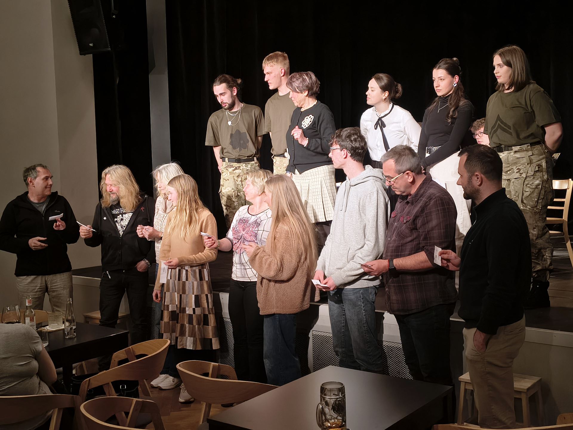 Cílem projektu je propojit divadelní představení s dalšími formami zábavy, zapojit diskusi a vtáhnout diváky přímo do děje i samotné akce. Večer začal představením jednotlivých souborů studia Domino, následovala hraná ukázka inspirovaná knihou Hlava 22. Program se i nadále věnoval tématu války, ovšem s nadhledem a interaktivní formou. „Následoval kvíz, zazpívali jsme si známou polku Škoda lásky a připomněli si její vznik. Diváky jsme zapojili také prostřednictvím slov na vstupenkách, ze kterých jsme společně vytvořili slogan,“ doplnila Jitka Vachková.