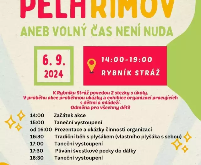 Pořádně živo bude i u Stráže. Už v pátek se tam uskuteční veletrh volnočasových aktivit Rozhýbejme Pelhřimov aneb Volný čas není nuda. Ten po změně dějiště akce zčásti inovuje i paletu nabízených aktivit. Těšit se tak můžete na paddleboardy, megaboardy, workshop na kolečkových bruslích. Hlavní náplň veletrhu je ale daná už tradičně: představí se pelhřimovské organizace, které pracují s dětmi a mládeží, chybět nebudou taneční vystoupení a běh s plyšákem. Program začíná ve 14 a končí v 19 hodin.