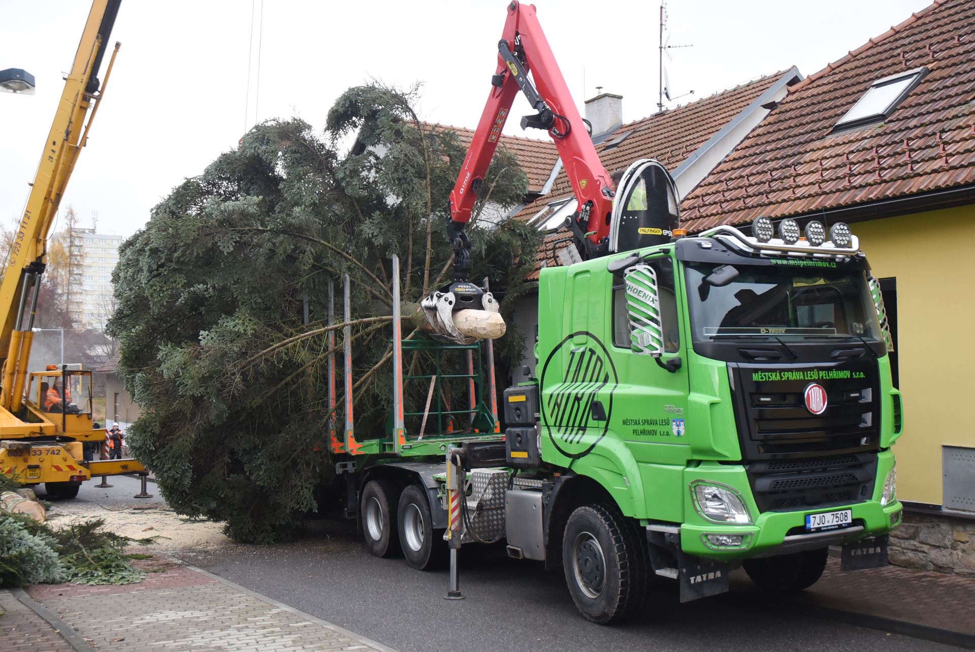 Vánoce začaly, chce se říci. Od dnešního dopoledne už je na Masarykově náměstí vánoční strom. Instalovali ho tam pracovníci Technických služeb města Pelhřimova. Samotný proces začal po sedmé ráno kácením zhruba dvacetimetrové jedle v ulici K. H. Borovského. Strom nejprve zajistili jeřábem z firmy Hejda, následně pracovníci technických služeb provedli kácení.