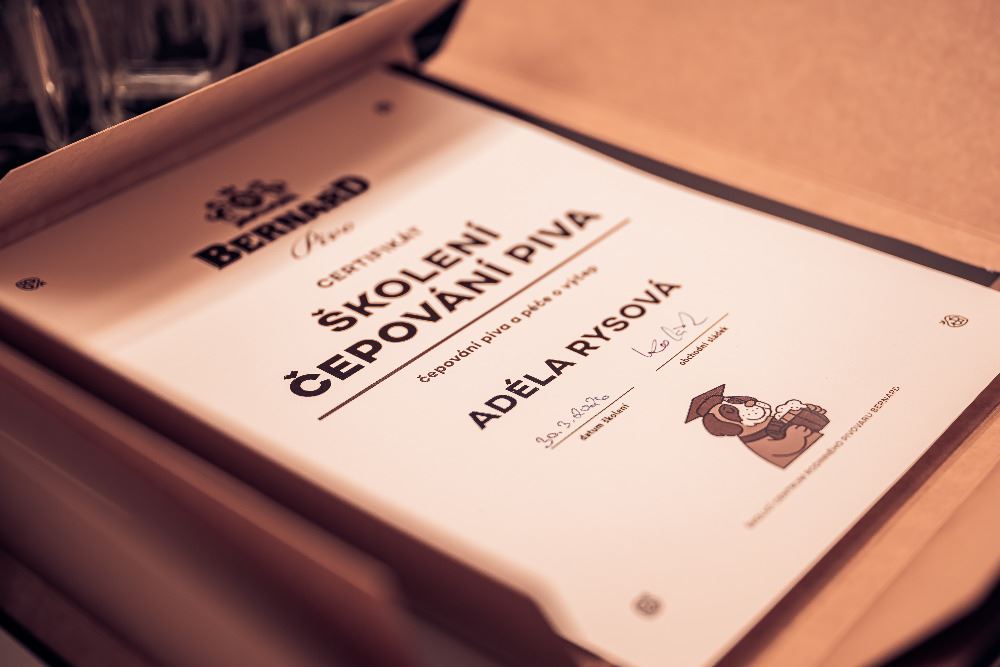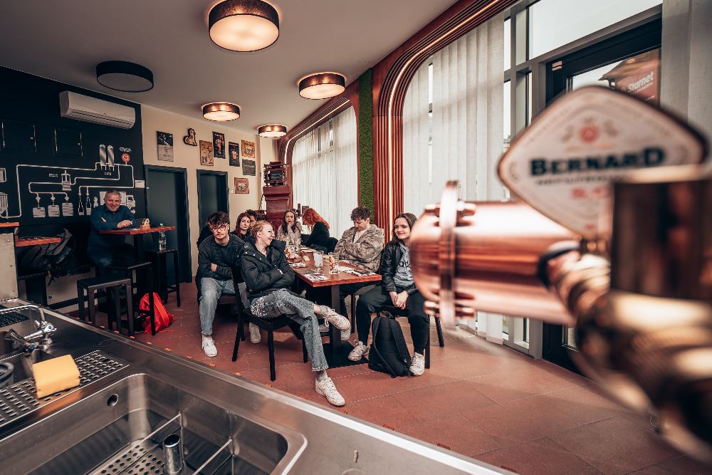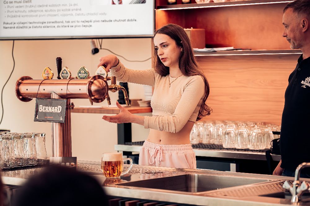 V dubnu jsme se zúčastnili kurzu čepování piva v pivovaru Bernard v Humpolci. Kurzu se zúčastnili studenti vyšších ročníků Hotelové školy Pelhřimov a nástavbového studia Podnikání. Dozvěděli jsme se zajímavé informace nejen o samotném čepování, výrobě, ale i o čistotě skla. Součástí programu byla i prohlídka pivovaru, kde jsme viděli varny, ležácké tanky, a dokonce jsme se i podívali do prostorů, kde se pivo stáčí do sudů. Samozřejmě jsme stáli i za pultem a zkusili jsme si načepovat pivo. Natočili jsme hladinku, šnyt, mlíko, čochtana, ale i řezané pivo, které většina z nás nikdy nenalévala. Zajímavou aktivitou byla soutěž v tom, kdo načepuje šnyt, který by měl vážit 300 gramů. Nejblíže se dostala studentka s úctyhodnou přesností 301 gramů. Kurz se nám velice líbil a rádi bychom ho doporučili dalším studentkám a studentům.