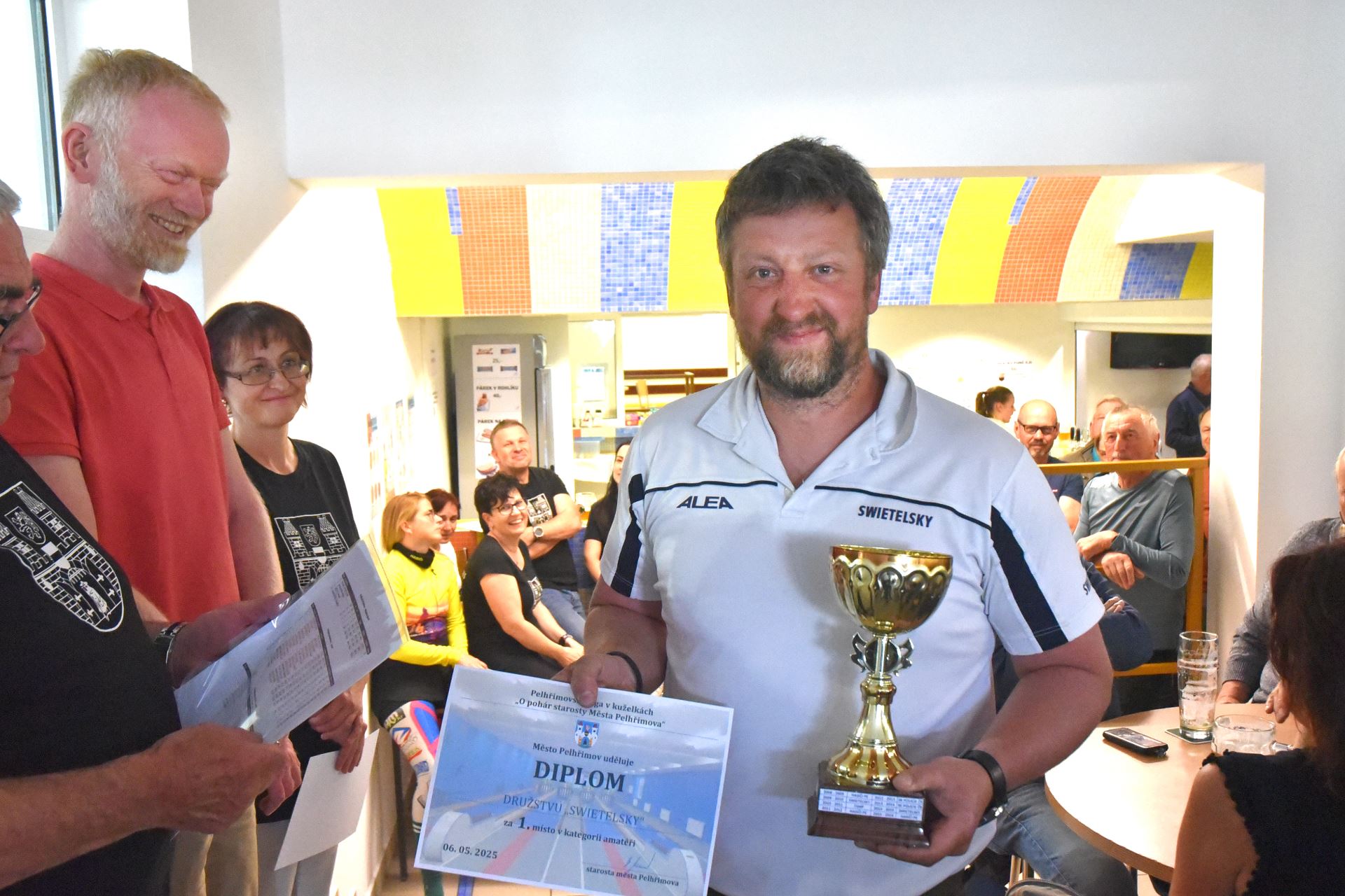 Letošní ročník Poháru starosty města Pelhřimova v kuželkách je v cíli. Tečku za tolik oblíbenou soutěží udělalo slavnostní vyhlášení, které se v prostoru bufetu na kuželně uskutečnilo v úterý 6. května. V soutěži registrovaných triumfovali potřetí za sebou hráči Pelhřimovské sportovní, stříbro brali kuželkáři z Myslotína, třetí skončil tým Město.