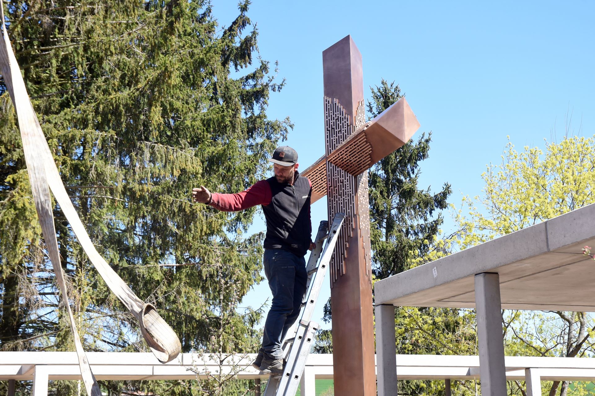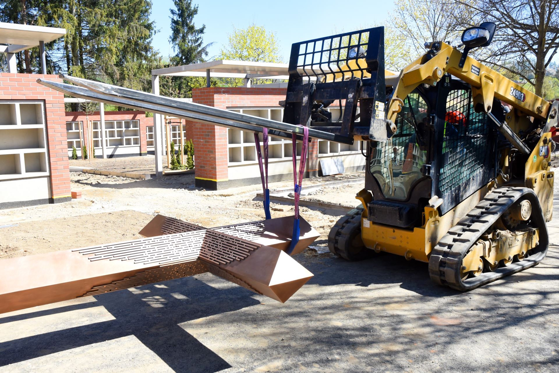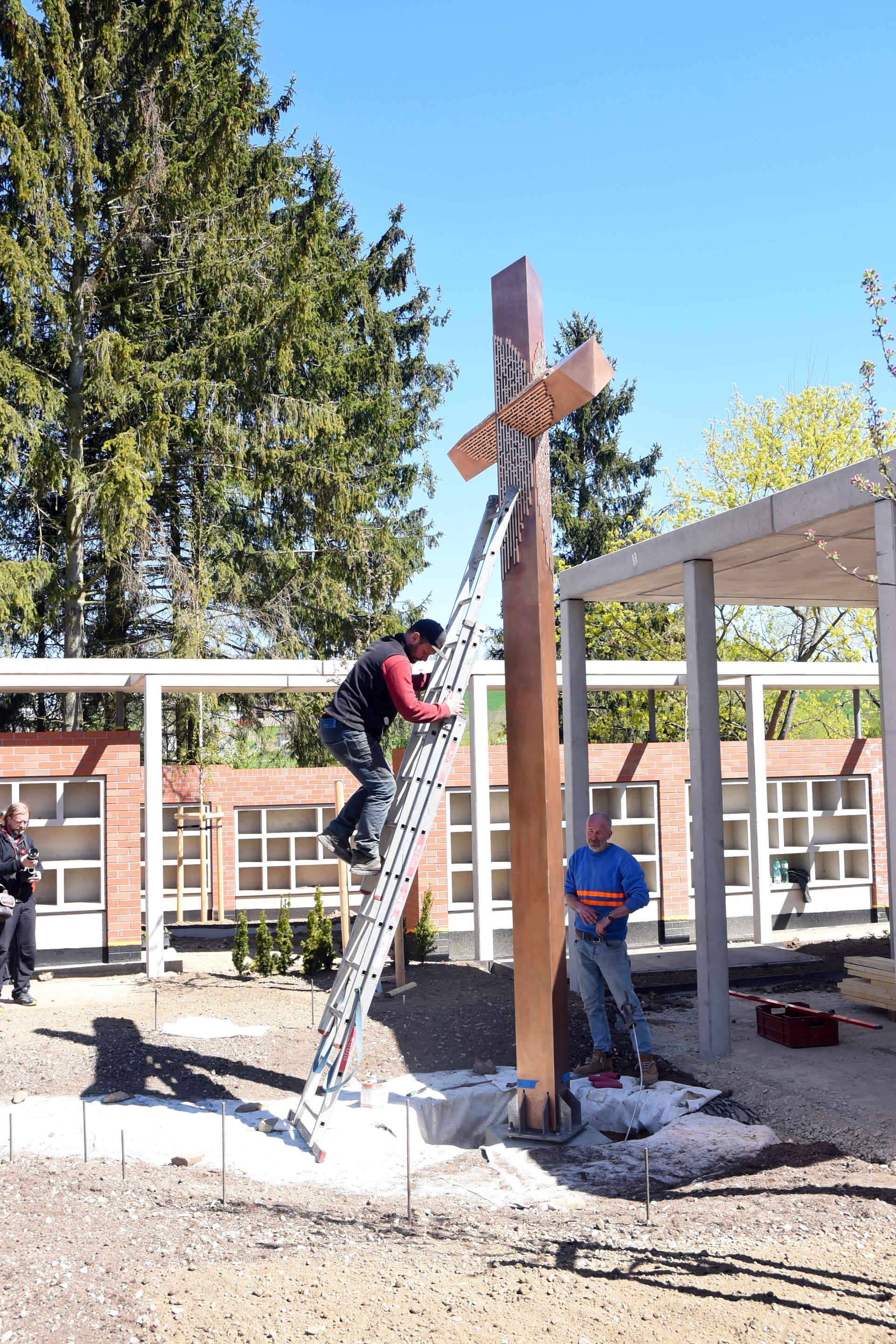 Nová část hřbitova v Pelhřimově roste do krásy. Ve středu 29. dubna v dopoledních hodinách byla za pomoci těžké techniky instalovaná umělecká díla. Jedná se o kříž a kašnu, autory návrhu uměleckého řešení jsou architekti Petr Todorov a Jan Říčný.