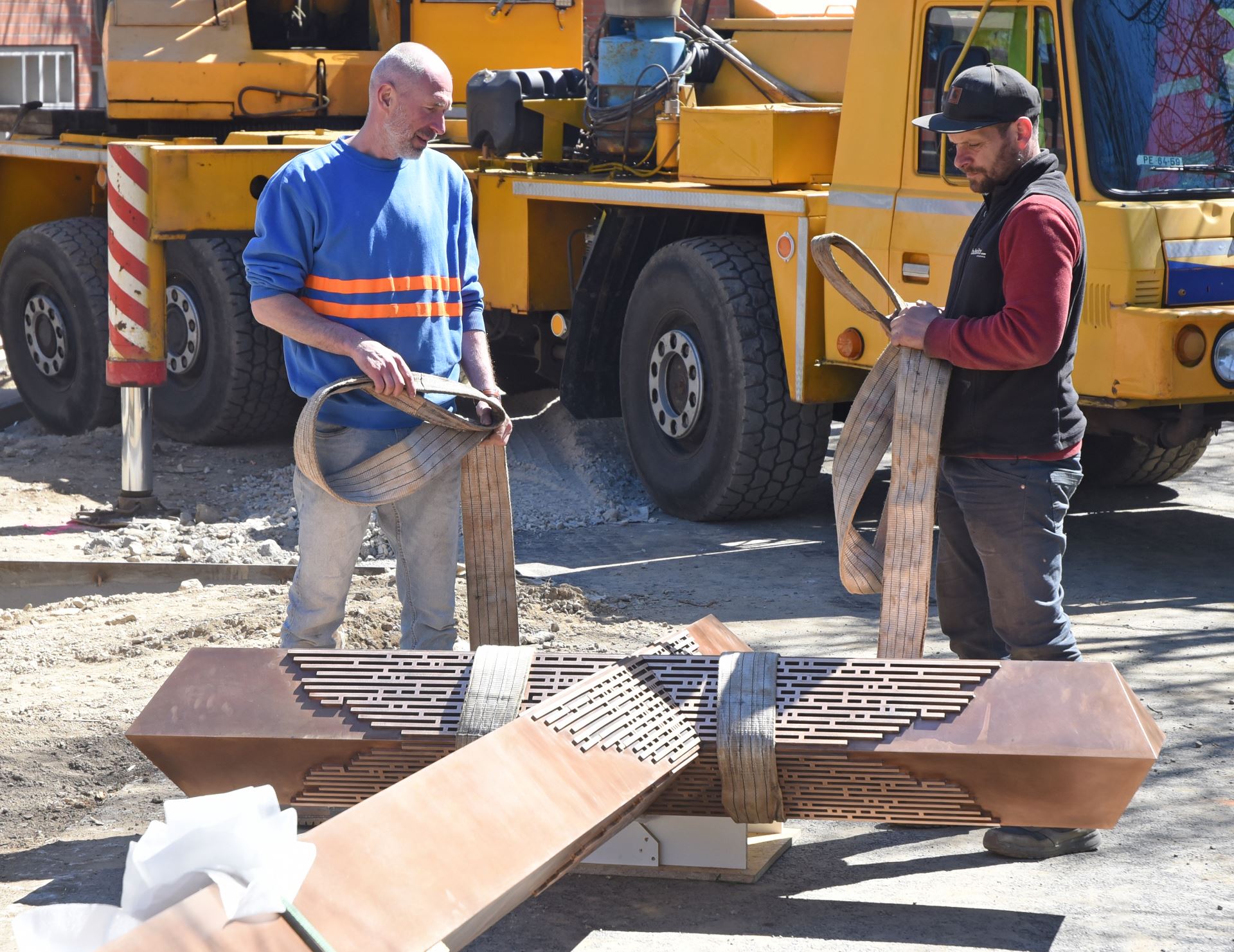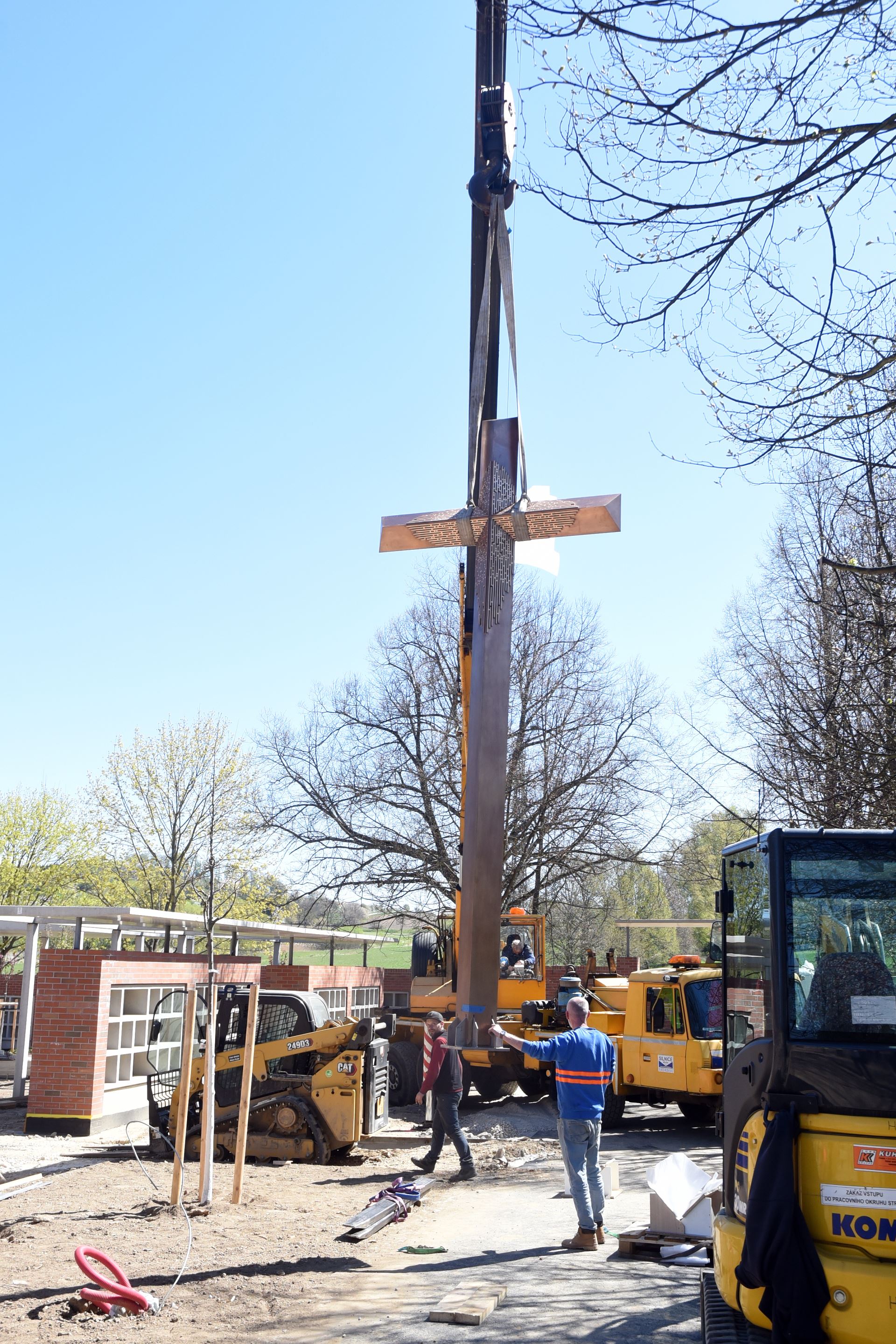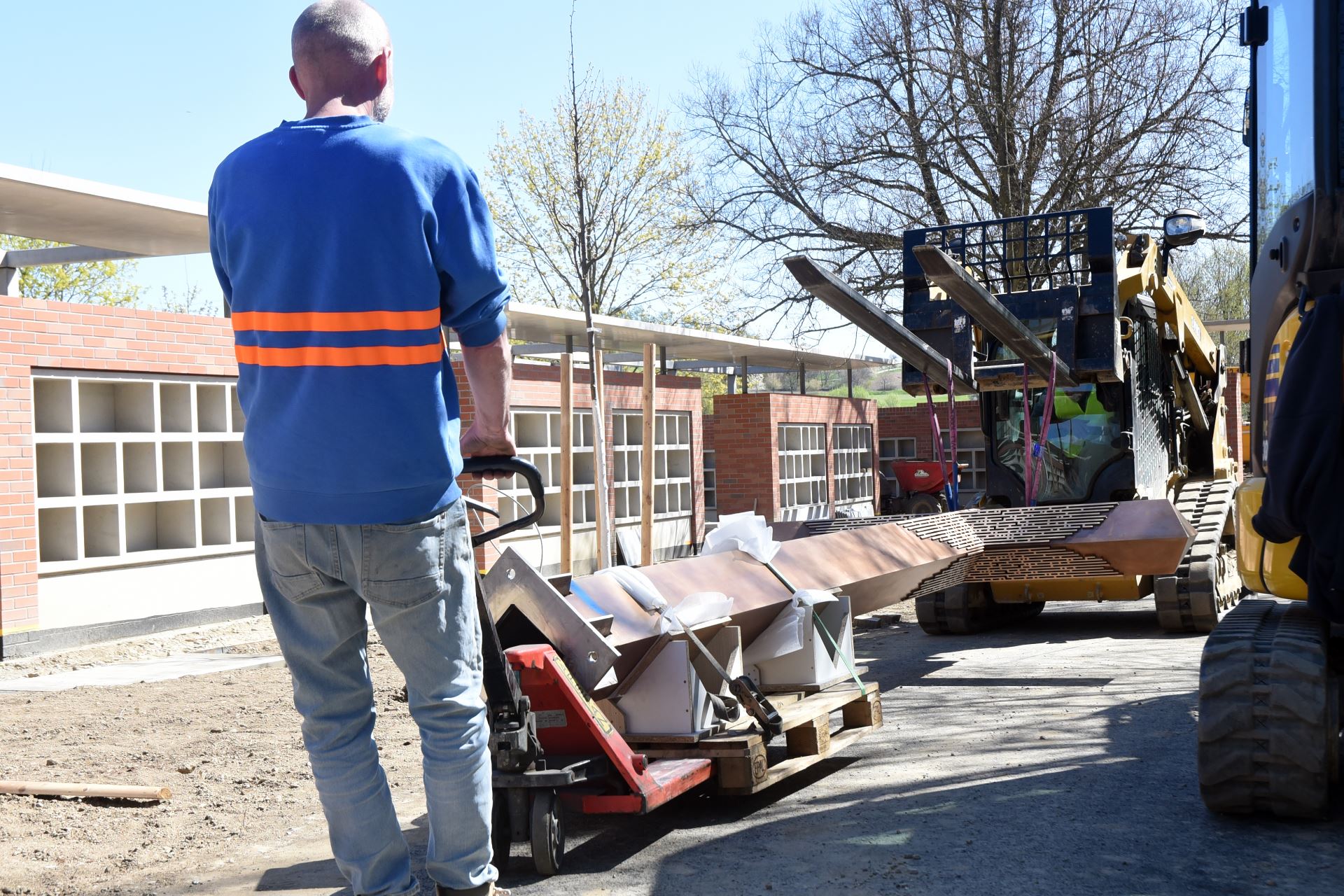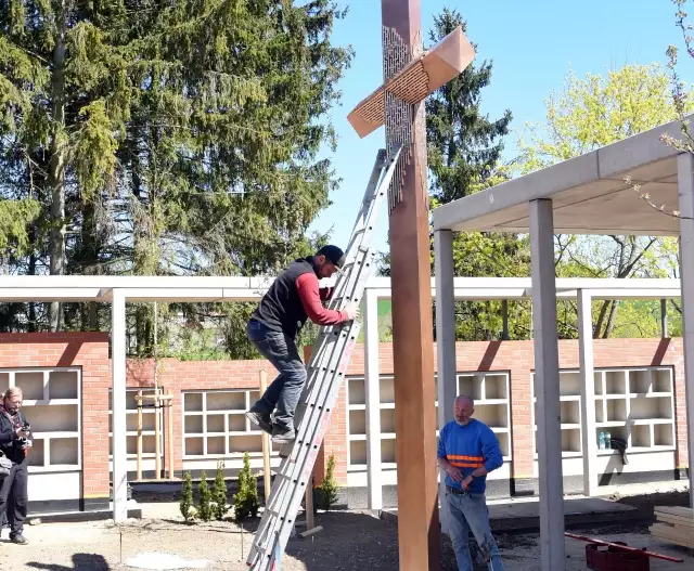 Nová část hřbitova v Pelhřimově roste do krásy. Ve středu 29. dubna v dopoledních hodinách byla za pomoci těžké techniky instalovaná umělecká díla. Jedná se o kříž a kašnu, autory návrhu uměleckého řešení jsou architekti Petr Todorov a Jan Říčný.