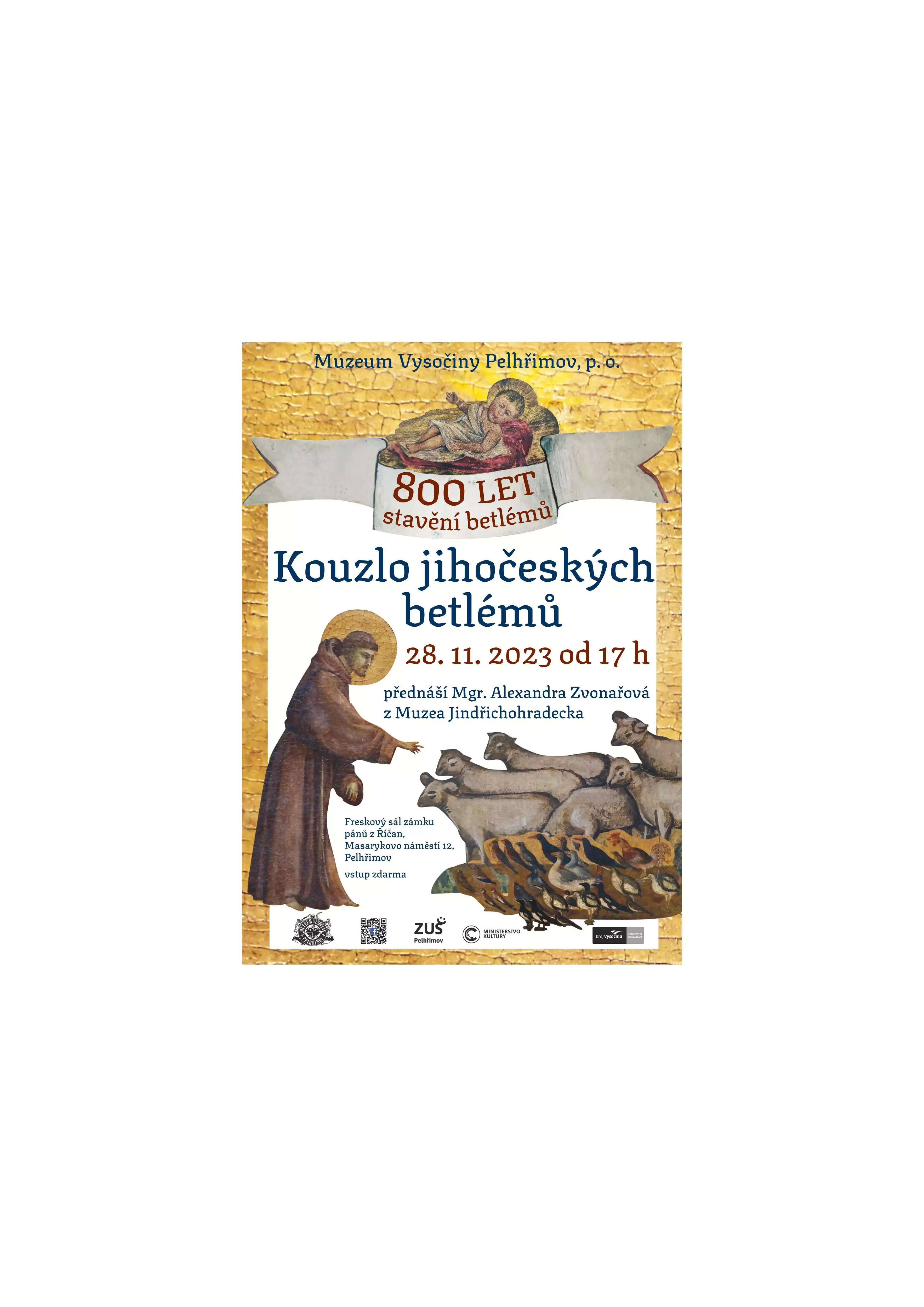 Přednáška je součástí výstavního projektu O Ježíškovi, Františkovi a zvířátkách. 800 let stavění betlémů, v jehož rámci v pelhřimovském muzeu probíhá stejnojmenná výstava. Projekt probíhá díky podpoře dotačního programu Podpora tradiční lidové kultury Ministerstva kultury ČR.