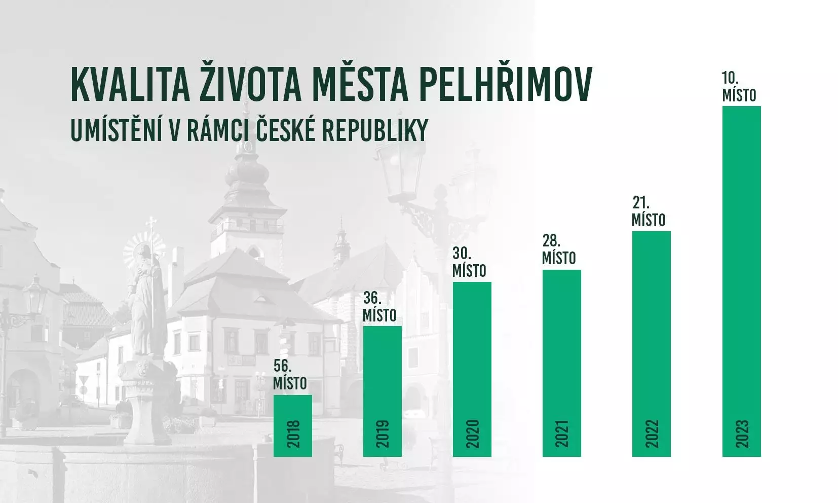 s rozšířenou působností. Pelhřimov je v rámci patnácti hodnocených měst Vysočiny na prvním místě. Pokud jde o celkové pořadí, je Pelhřimov z celkem 205 měst letos na desátém místě, což představuje oproti loňsku zlepšení o jedenáct pozic.