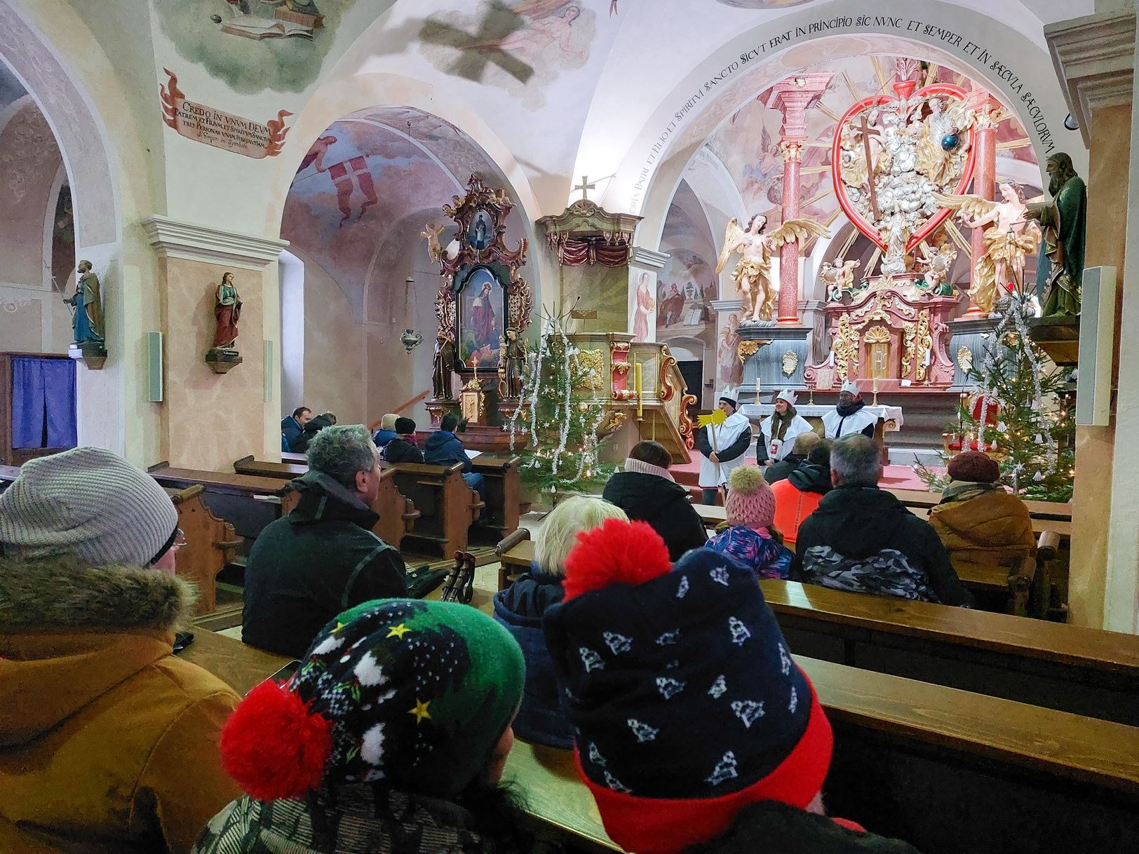 Nechybělo společné fotografování s Kašparem, Melicharem a Baltazarem, díky Matici Křemešnické komentovaná prohlídka areálu kostela Nejsvětější Trojice na Křemešníku, horké nápoje v ambitech poskytnuté poutním hotelem Křemešník, díky vstřícnosti p. Kováře a průvodce Pavla Pípala také možnost prohlídky Větrného zámku a na závěr v kostele zpívání koled v podání zpěváků ze ZUŠ Pelhřimov a pana ředitele Jiřího Váni, který sbor doprovázel na kostelní varhany.