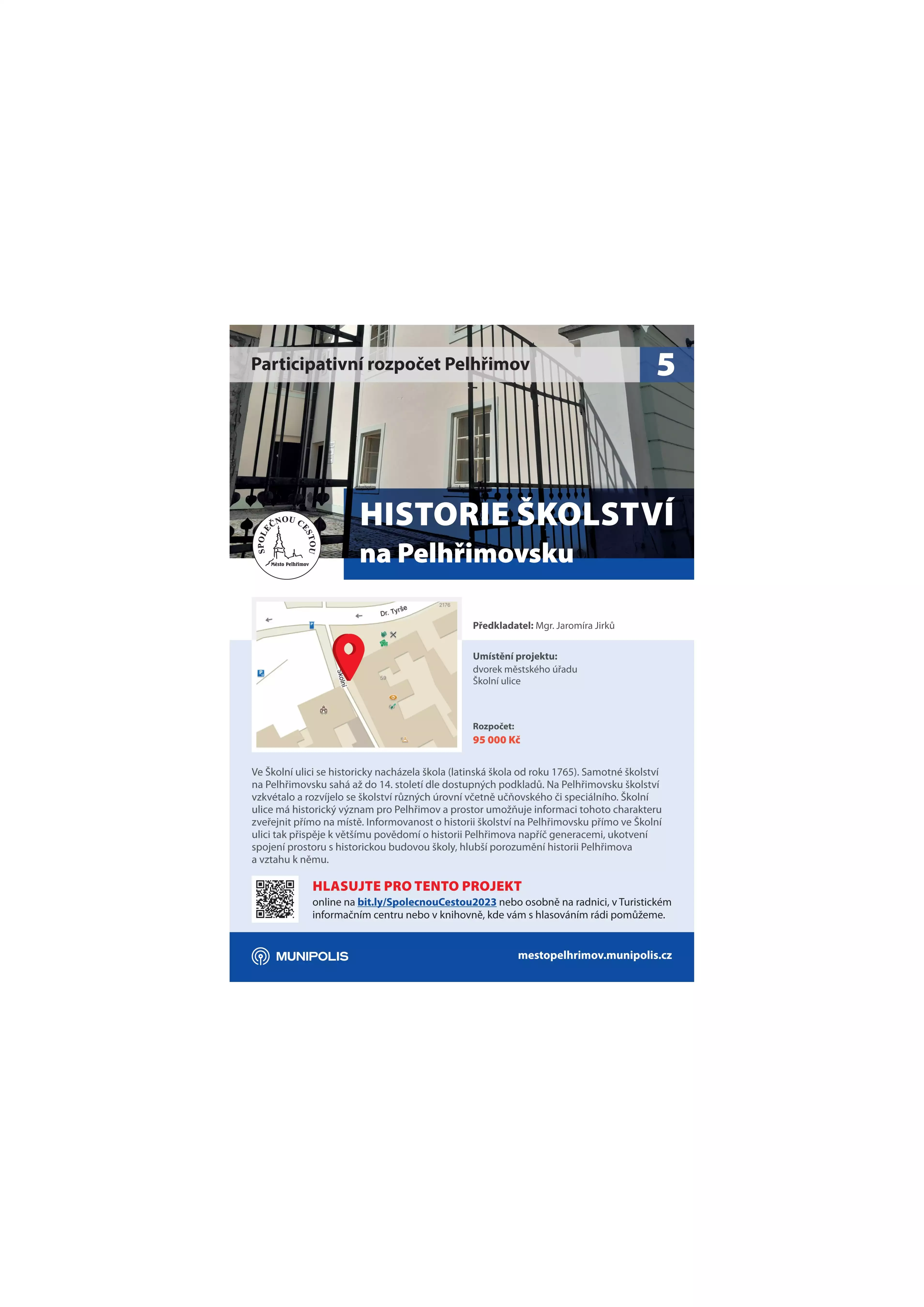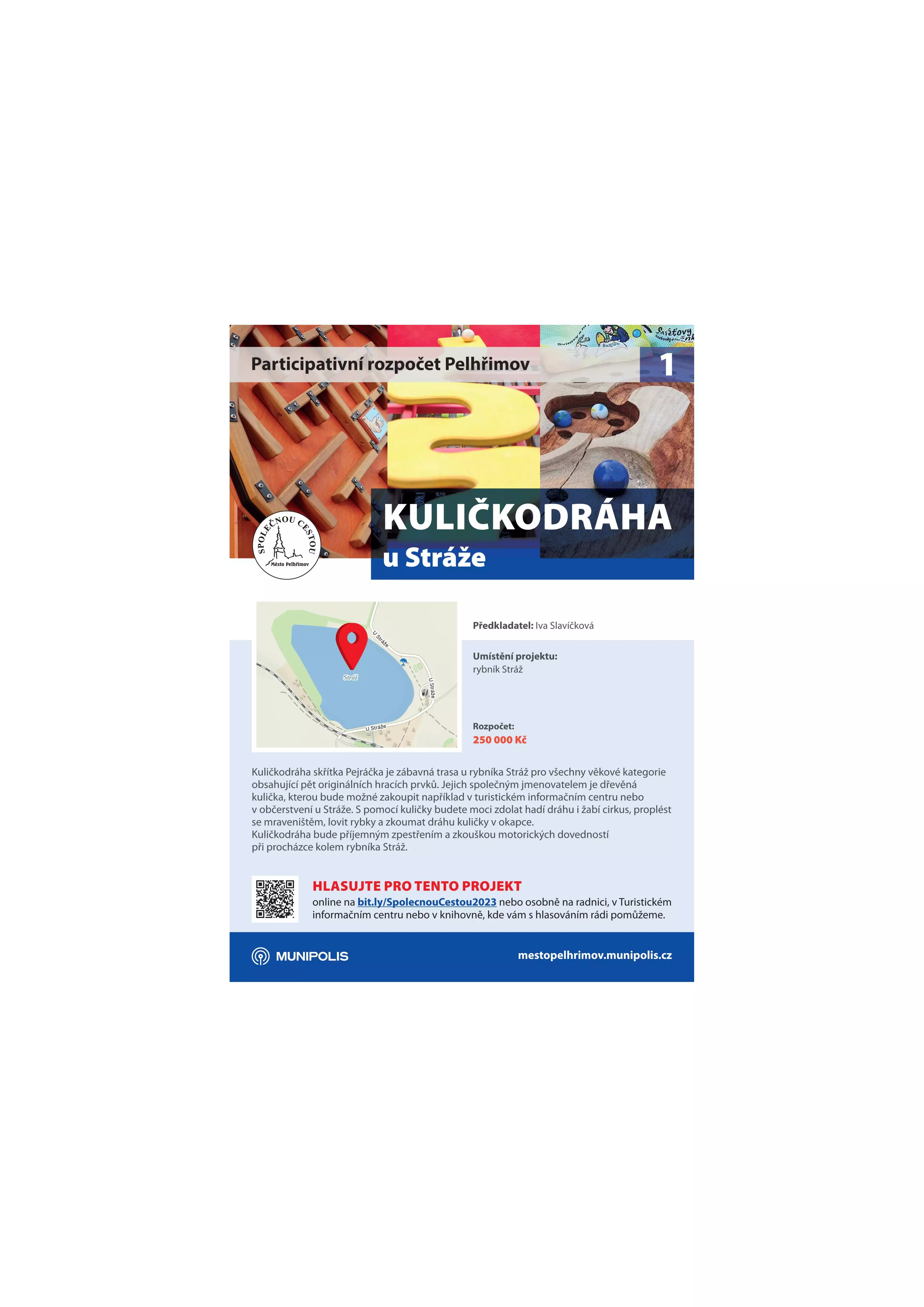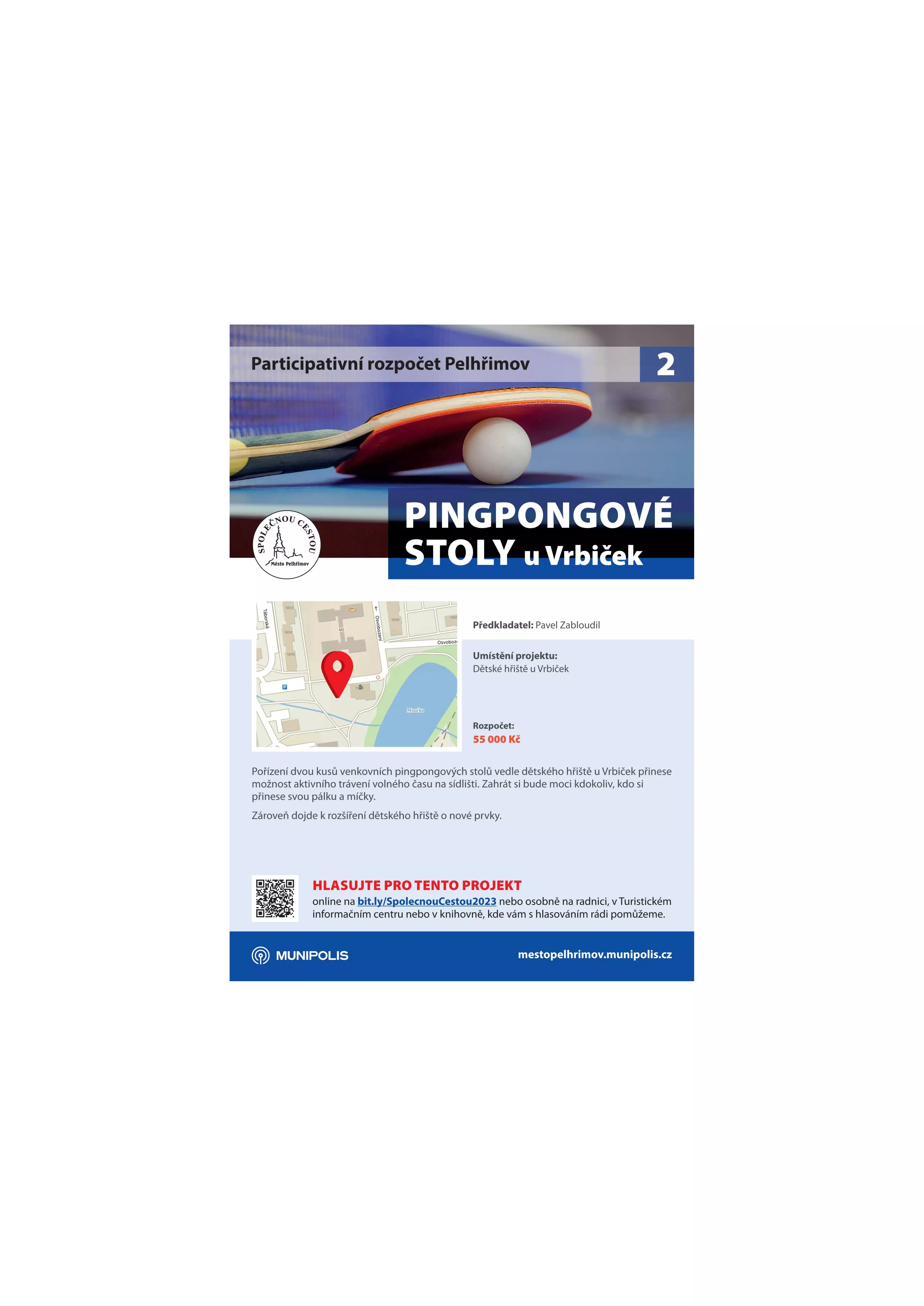 Hlasování o participativním rozpočtu startuje. Od dnešního dne až do 22. října můžete rozhodnout, jaké projekty Pelhřimov realizuje v následujícím roce. Na projekty Společnou cestou je v rozpočtu vyčleněno půl milionu korun. Dle pravidel byl stanoven rozpočet pro jeden projekt v maximální výši 250 tisíc korun. Z toho vyplývá, že možné realizovat více projektů. Vítězné projekty budou seřazeny podle výsledků hlasování do vyčerpání daného půl miliónu. Proto se zapojte a hlasujte!