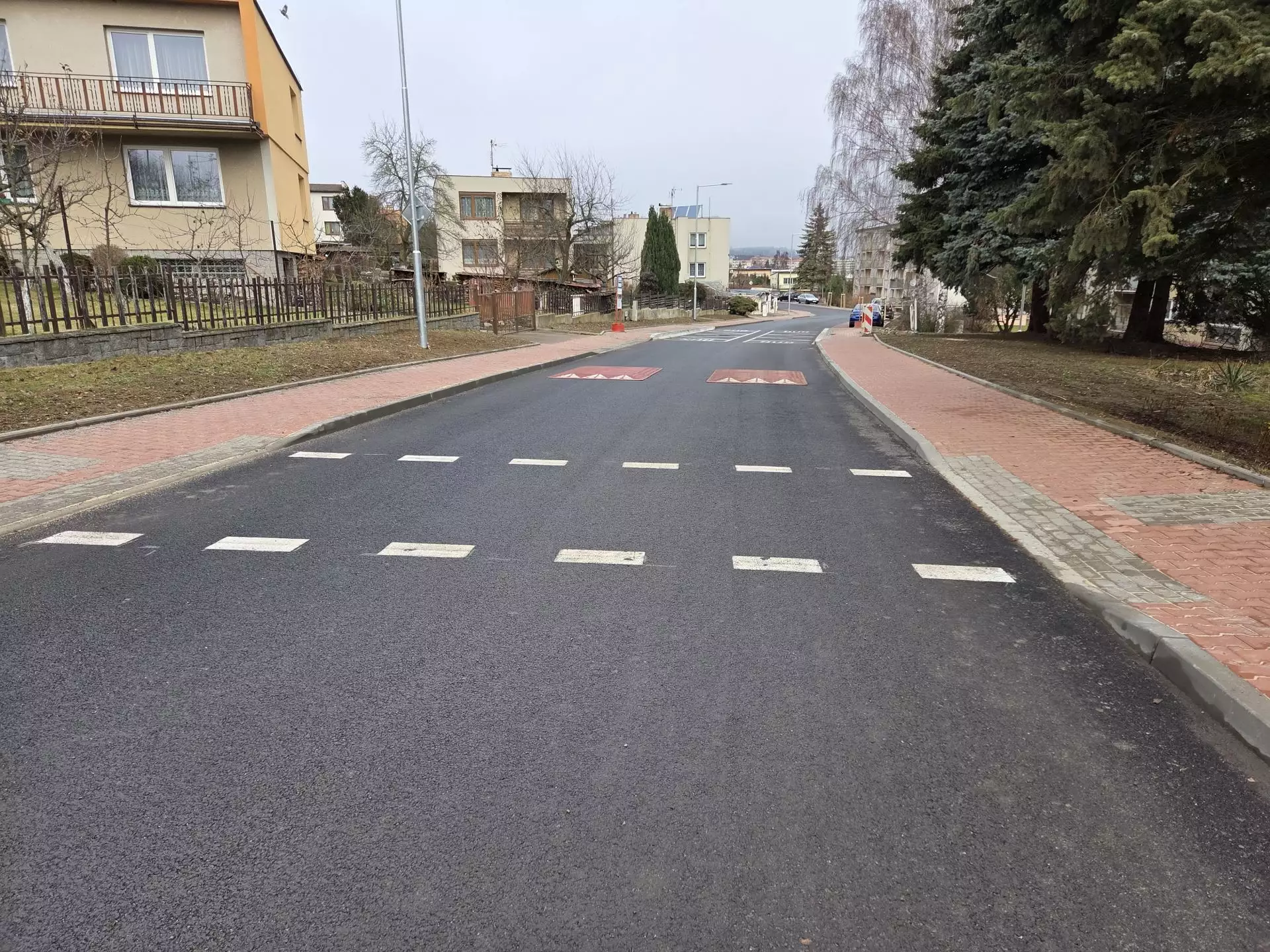 Město Pelhřimov provedlo obnovu povrchu komunikace a parkoviště v ulici Táborská. Realizace přinesla bezpečnější a komfortnější pohyb pro řidiče i chodce díky novému asfaltovému povrchu, výměně silničních obrub a vybudování dvou zvýšených míst z žulových kostek určených pro přecházení. Součástí prací byla také výšková úprava kanalizačních poklopů a mříží.