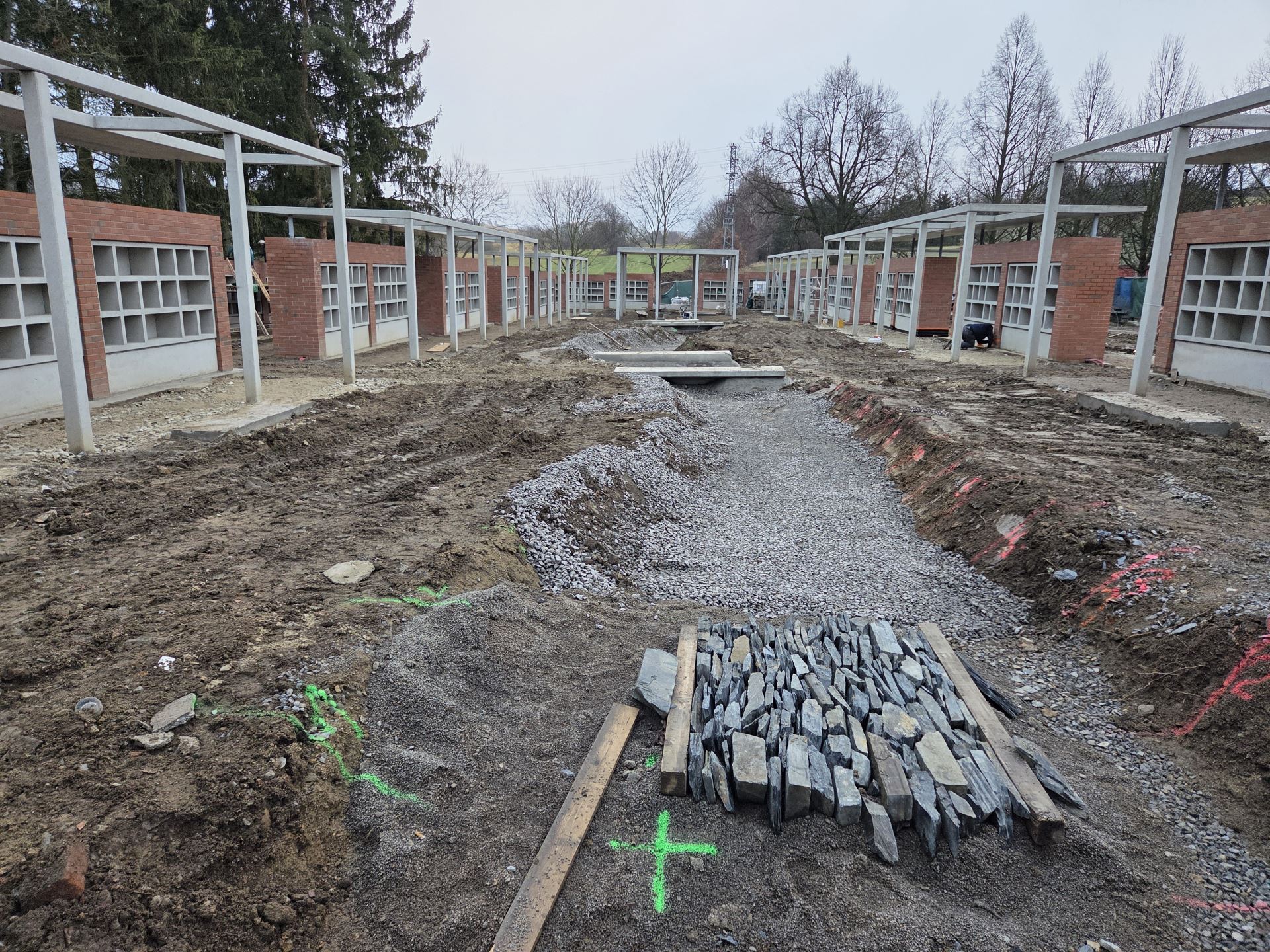 Východní část městského hřbitova v Pelhřimově prošla v uplynulém období výraznou proměnou. V rámci první etapy rozšíření zde vznikal nový prostor určený především pro ukládání uren. Projekt byl navržen s maximálním důrazem na zachování důstojného charakteru místa a citlivě navazoval na historický i přírodní kontext celé lokality. Stavební práce probíhaly v části areálu, která nebyla vhodná pro tradiční pohřbívání do země. Postupně zde vznikal rozšířený centrální prostor s kolumbárii, novou částí ohradní zdi a dalšími architektonickými prvky, které přirozeně doplnily stávající podobu hřbitova. Výrazným a esteticky hodnotným prvkem se stane také bronzová kašna, jež prostor obohatí o klidový a pietní prvek. Rozšíření městského hřbitova bylo v roce 2025 realizováno částečně dle stanoveného harmonogramu, přičemž dokončení projektu s ohledem na rozsah prací je naplánován do první poloviny roku 2026.