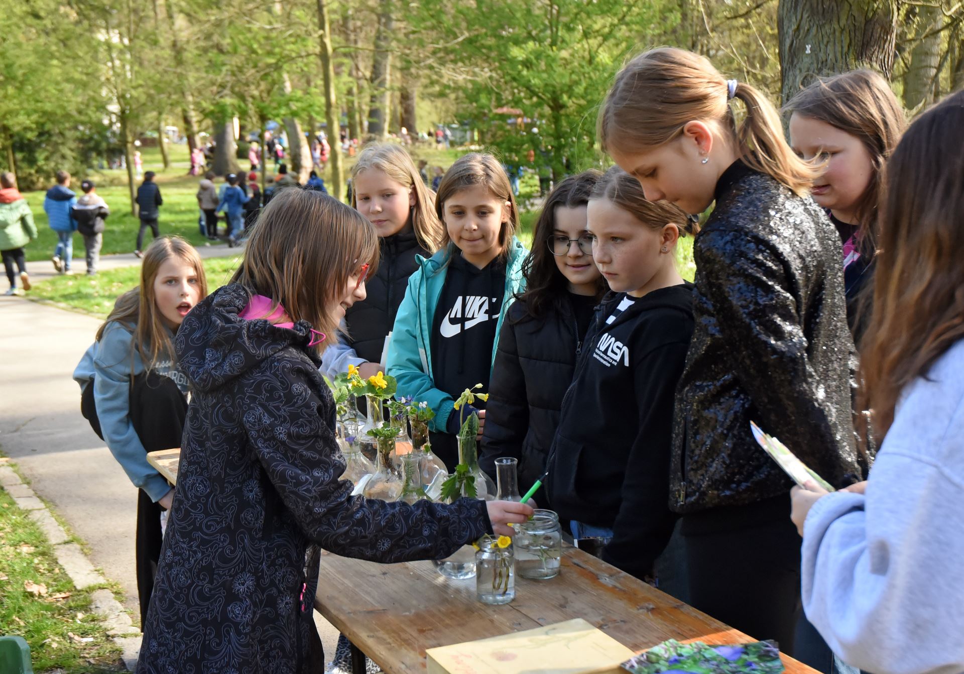 Příchozí tak mohli poznávat zvířata, ptactvo, houby, rostliny, stromy a keře. Nechyběly ani ukázky užitkových zvířat a domácích mazlíčků. V Městských sadech byli přítomni také zástupci Pelhřimovské vodárenské. „Na našem stanovišti se snažíme dětem představit věci, které nás při čištění odpadních vod trápí. Kanalizací se nám na čistírnu dostává spousta věcí, které tam nepatří – zbytky jídel, tuky nebo nerozpustné hygienické prostředky. Chceme, aby si to děti uvědomily a případně s tím doma seznámily i rodiče. Dále jim ukazujeme proces čištění odpadních vod. Doprovázíme to ukázkou vody z řeky Bělé před čištěním a po něm,“ sdělil jednatel společnosti Vlastimil Šebesta.