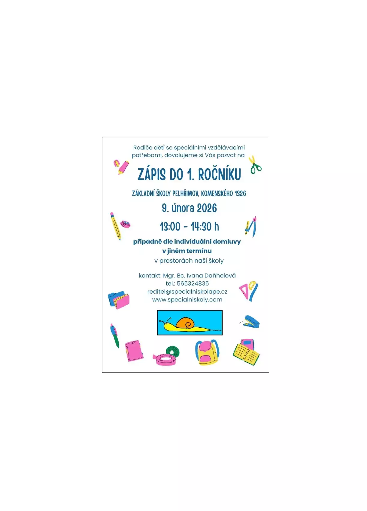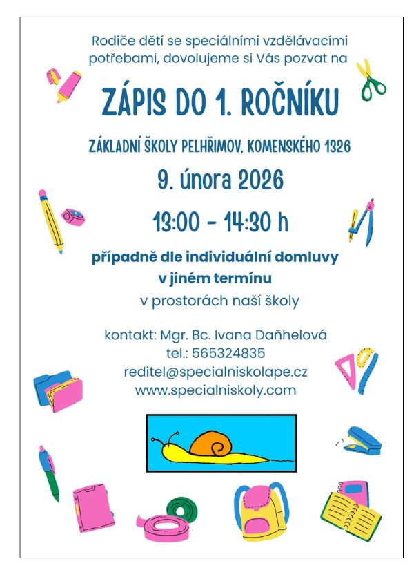 Rodiče dětí se speciálními vzdělávacími potřebami jsou srdečně zváni k zápisu do 1. ročníku na
