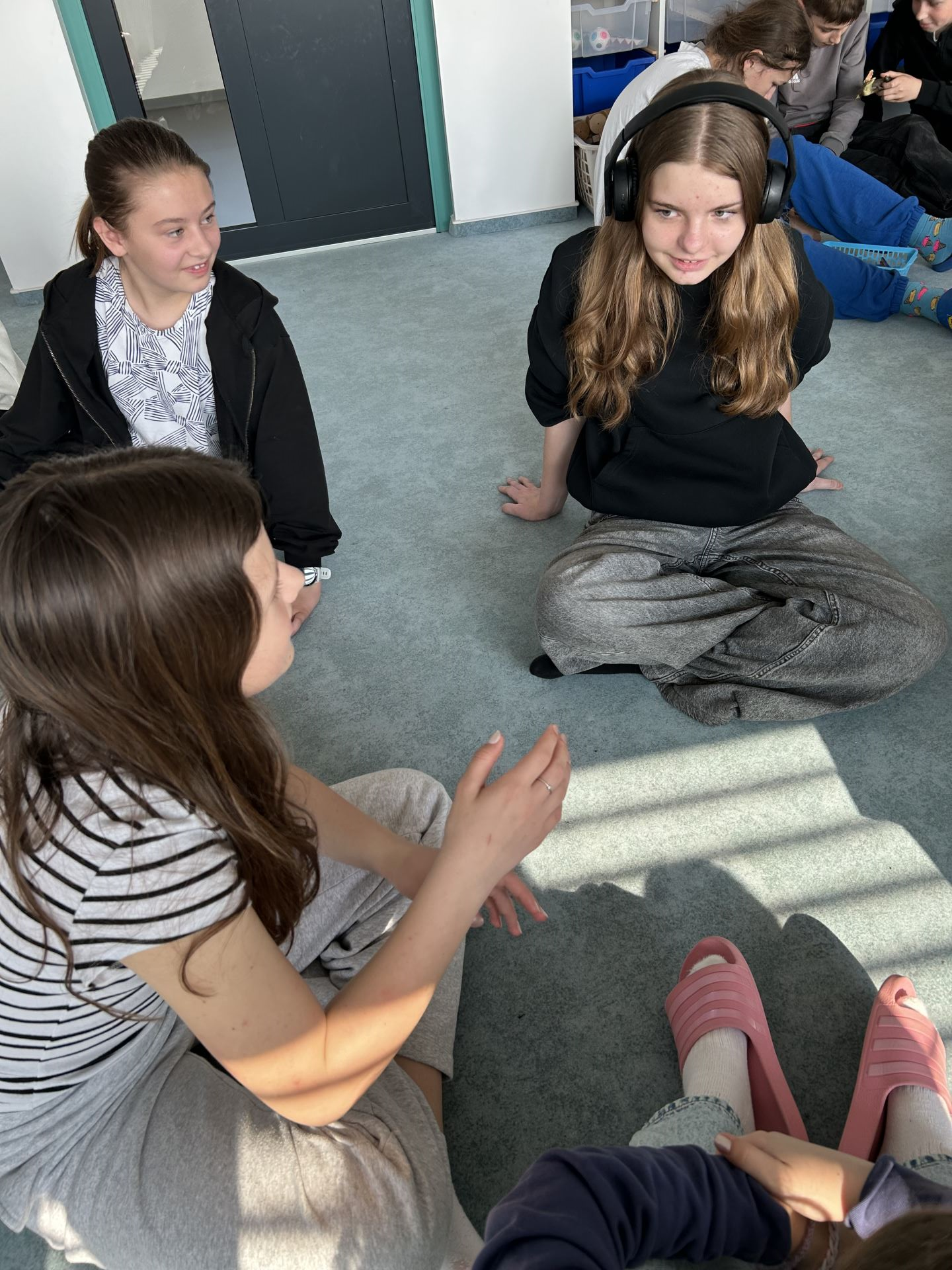 Čtvrteční dopoledne se neslo v duchu her, aktivit i zpívání písničky od rakouského zpěváka Falco. Protože bylo pěkné počasí, šli jsme také před školu a užili si aktivity. V odpoledních hodinách jsme využili moderních technologií a zahráli si německé hry na počítačích.