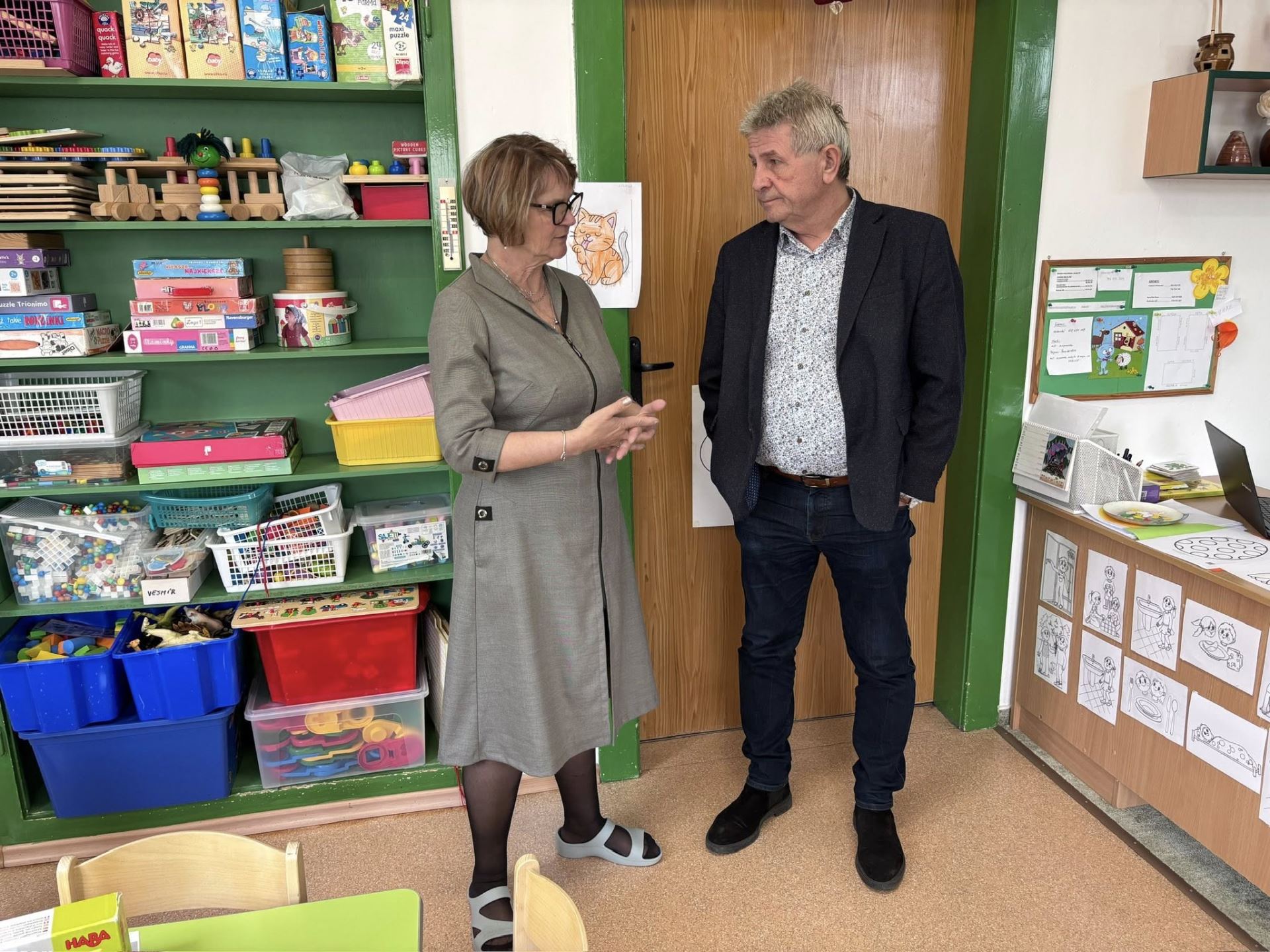 Pracoviště Pražská navštívili starosta města Ladislav Med, místostarosta Karel Kratochvíl a vedoucí odboru školství Městského úřadu Pelhřimov Zbyněk Rychecký, kteří se osobně zapojili do dění a prošli jednotlivé třídy. Děti je přivítaly po svém – hrou, kreslením a bezprostřední radostí z nového prostředí. Rodiče mezitím získávali všechny potřebné informace od ředitelky Věry Harudové, která jim zároveň předala drobné dárky pro malé předškoláky a ochotně odpovídala na všechny dotazy spojené s nástupem do školky.