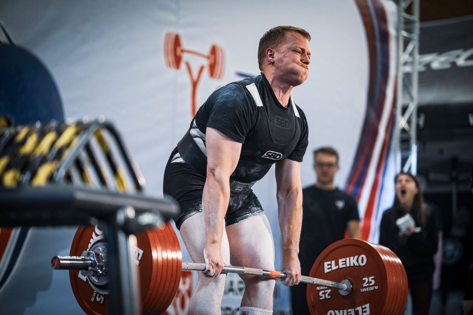 Vít Okrouhlý dosáhl výkonu 820 kilogramů v kategorii do 105 kilogramů. Poskládal ho z dřepu 285 kilogramů, bench-pressu 192,5 kilogramu a mrtvého tahu 342,5 kilogramu.