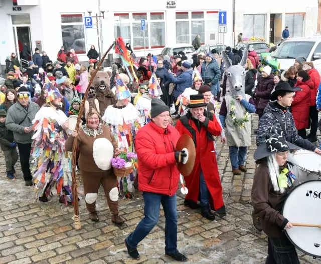 Nechyběla ani několikametrová tlačenka, kterou ochutnali ti, kdo se zapojili do programu na pódiu i pod ním. Tanec, zpěv a vyhlášení nejkrásnějších masek pak dotvořily atmosféru pravého masopustu.