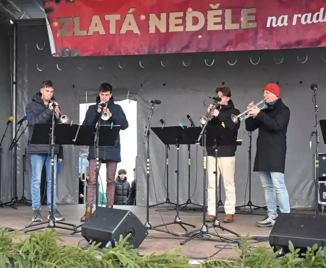 Jen co dozněly tóny uvítací fanfáry na Masarykově náměstí v Pelhřimově, započala Zlatá neděle na radnici. Hned na začátku celodenní tradiční akce uvítal přítomné starosta města Ladislav Med. „Přeji vám, abyste si dnešní den užili a potkali se se svými známými,“ uvedl a dodal: „Zároveň vám přeji šťastné a krásné svátky a aby rok 2025 byl ještě lepší než ten letošní.“ Následně poděkoval všem, kteří pomáhali s organizací, a všechny přítomné návštěvníky pozval na radniční svařák, který servíroval spolu s oběma místostarosty.