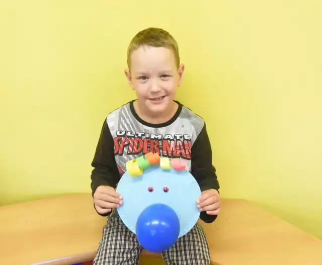 „Můj klaun ještě jméno nemá. Doma si ho vystavím na poličku,“ svěřila se pětiletá Zuzka, která vyrobila růžového klauna. Chybět mu samozřejmě nemohli ani třpytky, třásně a velký nos. Zuzka navštěvuje tvořivé dílny v knihovně pravidelně.
