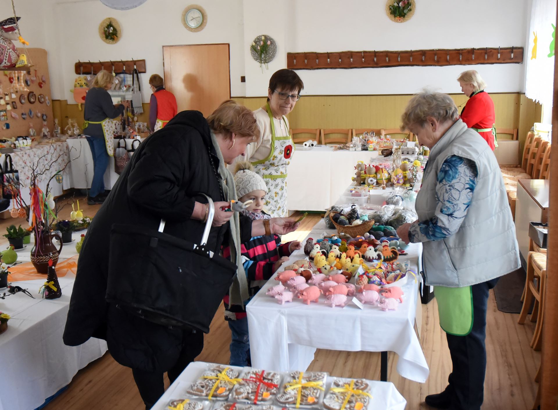 Navštívili ji dospělí i děti. „Mně se líbily slepičky,“ měla na mysli pletené výrobky doslova za pár korun Adélka, která půjde teprve příští rok do školy. Drobné předměty byly opravdu lákadlem, tradičně se rychle začaly vyprodávat také perníčky. V nabídce byla samozřejmě malovaná či jinak zdobená vajíčka, velikonoční vazby, keramika i květiny.
