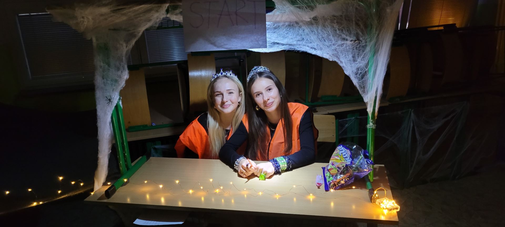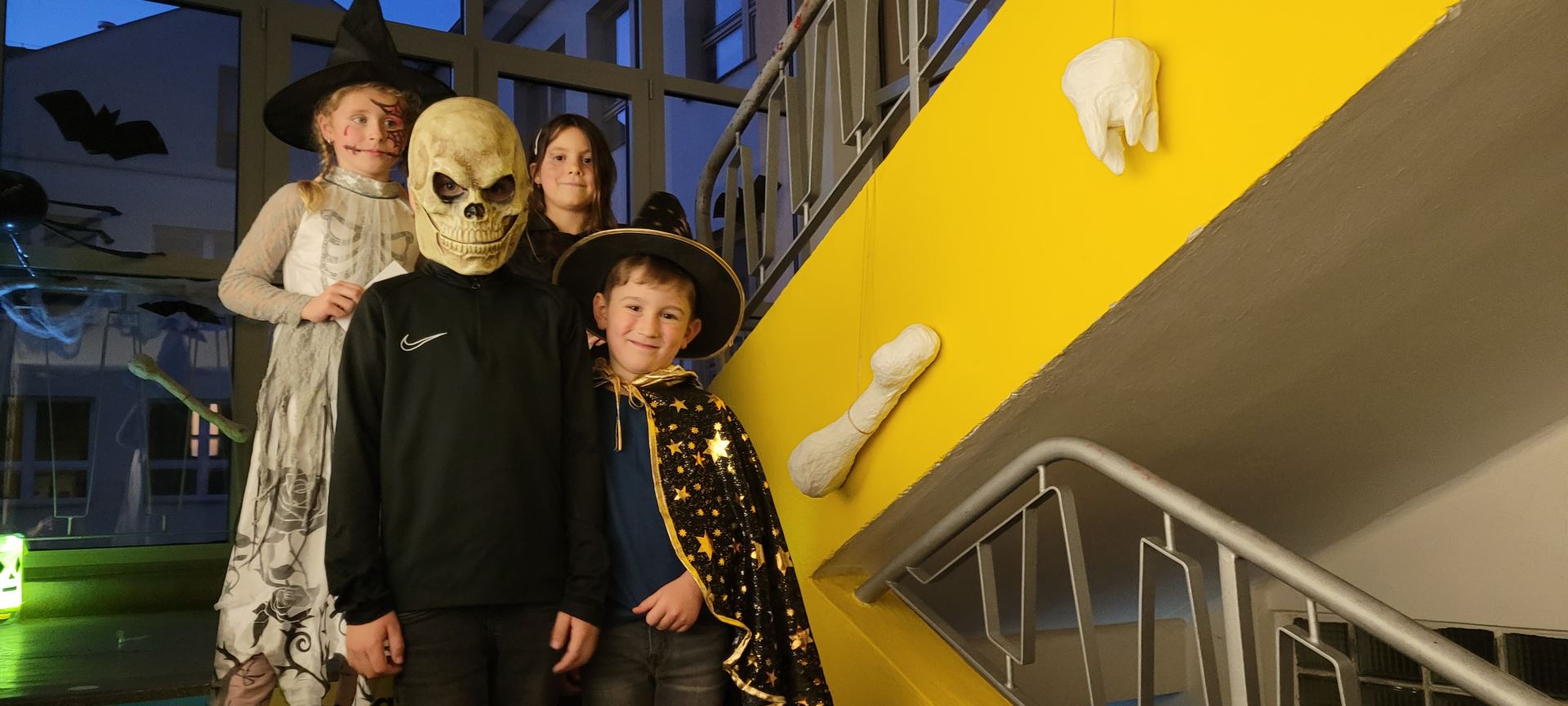 Přes 130 žáků 2. stupně spolu s učiteli připravilo pro mladší spolužáky strašidelnou stezku plnou duchů, čarodějnic, dýní, kouzel a úkolů. Na černo-oranžových stanovištích plnilo na dvě stě padesát dětí v doprovodu rodičů nejrůznější úkoly – od házení míčků do netopýřích kelímků, Kimovy hry se zapamatováním předmětů přes lovení věcí ve slizu, v rýži a z krabic, hraní skořápek, hledání rozdílů na obrázcích či ochutnávku začarovaných jídel až po strašidelné tunely a pavoučí prolézačky.
