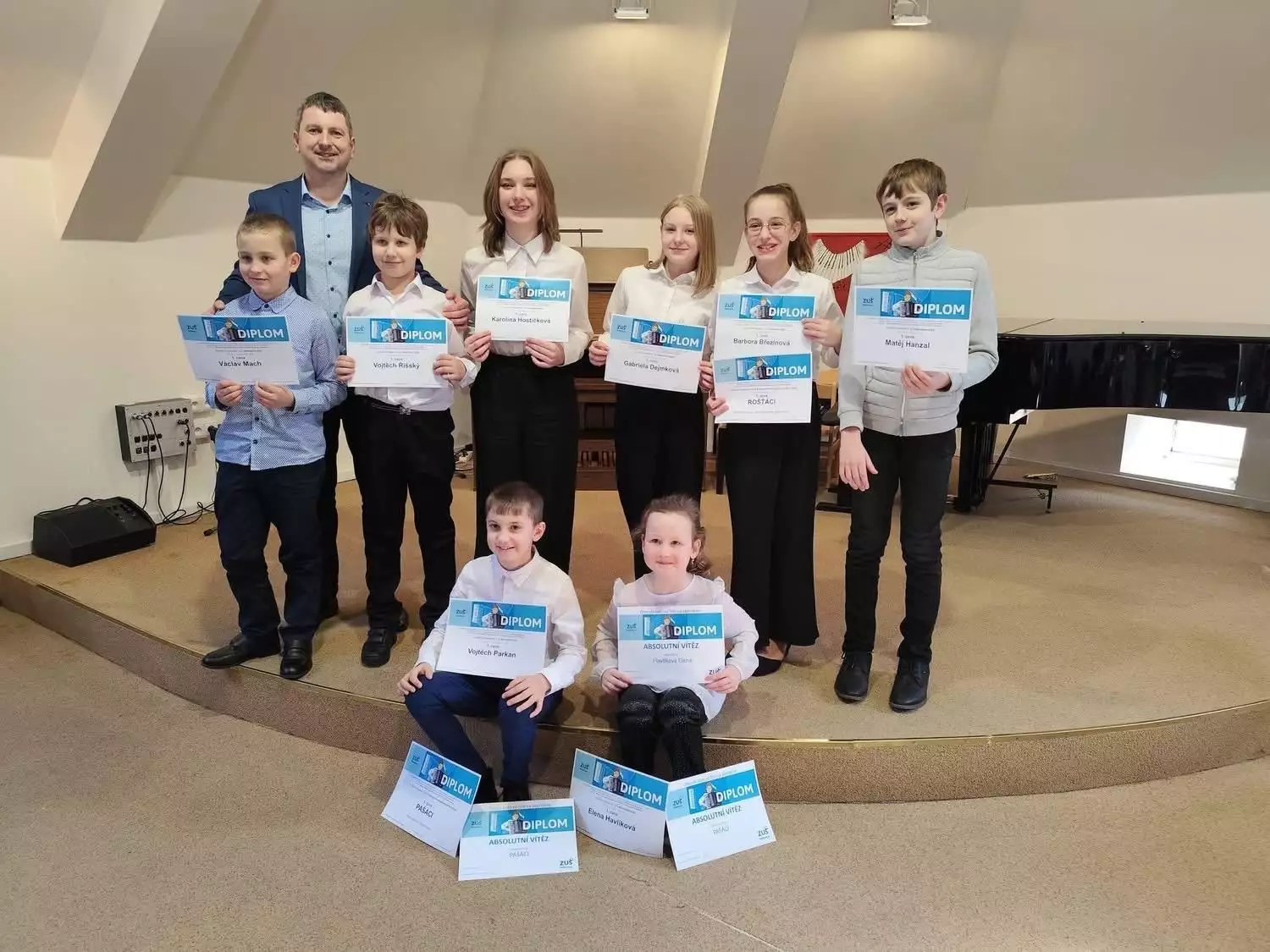 ZUŠ Pelhřimov zaznamenala výrazný úspěch v Okresním kole soutěže v sólové, komorní a souborové hře na akordeon, které se uskutečnilo 4. března 2026. Všech osm žáků školy postoupilo do krajského kola a navíc získali dvě absolutní vítězství – v sólové hře zvítězila Elena Havlíková a v komorní hře triumfovalo Duo Roštáci ve složení Vojtěch Parkan a Elena Havlíková.