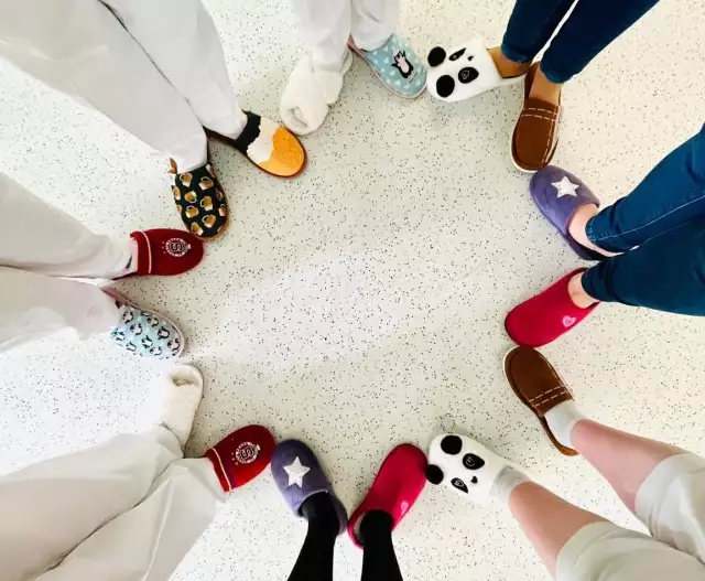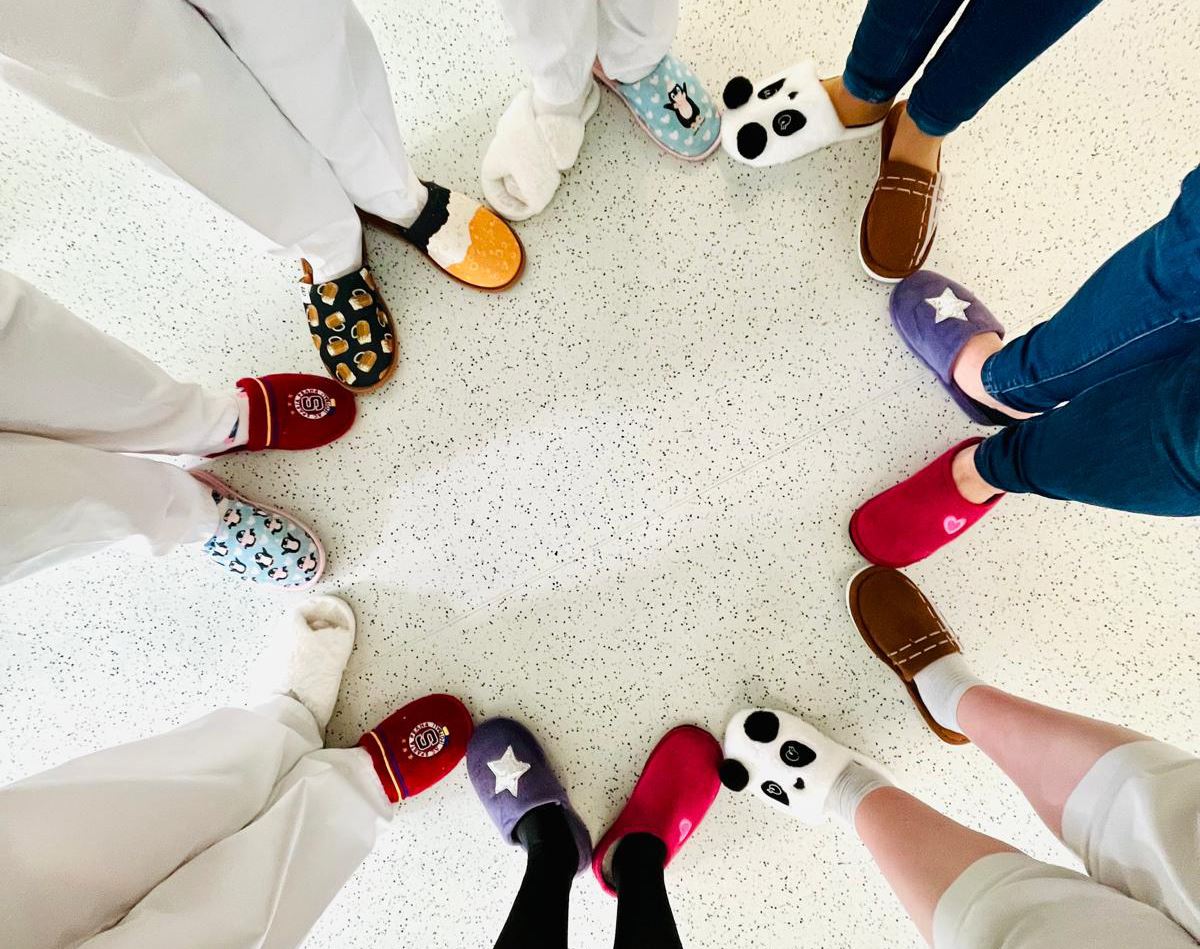 Do Papučového dne se zapojili také zaměstnanci nemocnice – kolegyně a kolegové z oddělení urologie, centrální sterilizace, paliativní péče, hematologie a transfúziologie, urgentního příjmu, oddělení dlouhodobě nemocných, klinické biologie, rehabilitace či ekonomického oddělení. Jejich účast byla skvělým projevem týmového ducha a solidarity, který krásně podtrhl smysl celé akce.