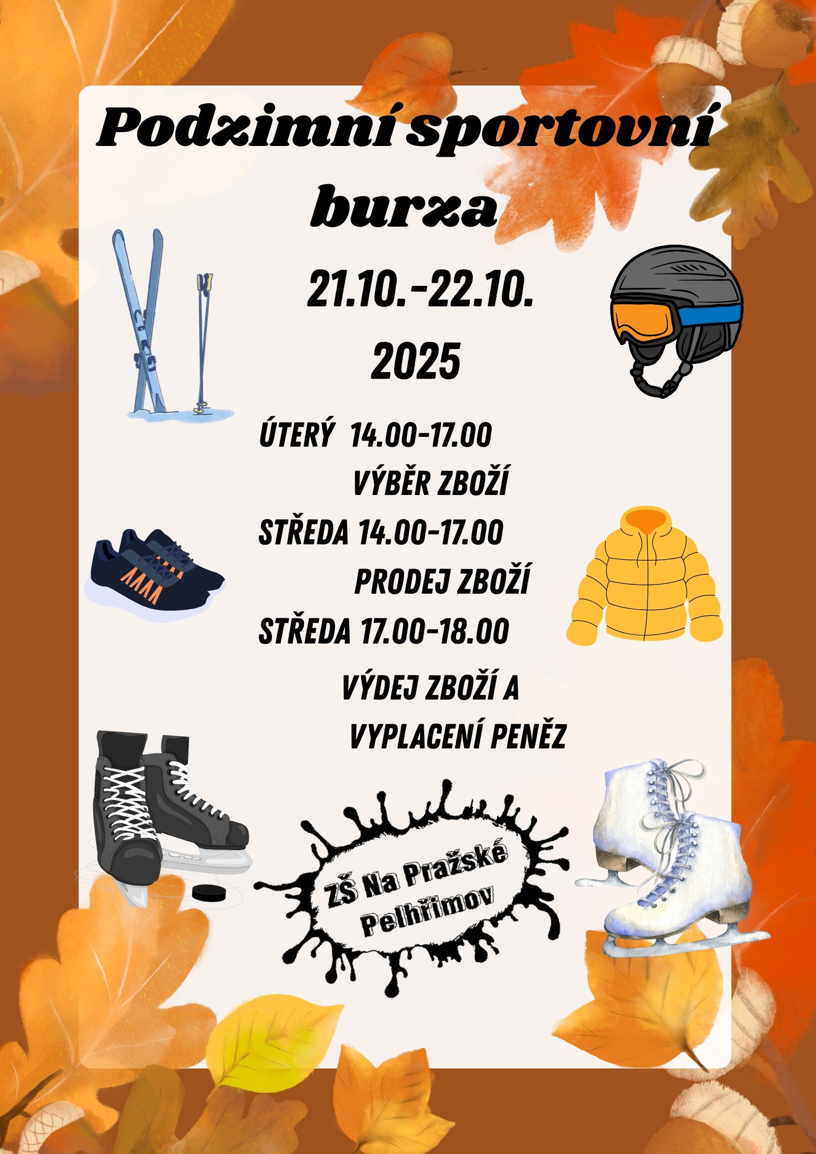 Máte doma lyže, ze kterých děti vyrostly? Nebo kolo, které už nepoužíváte, ale mohlo by odvést dobrou službu někomu jinému? Nebo naopak sháníte sportovní potřeby a nechcete nutně investovat do koupě nových? Pokud ano, pak je následující informace pro vás. ZŠ Na Pražské pořádá ve dnech 21. a 22. října burzu sportovních potřeb. Více informací se může dozvědět na přiloženém letáku.